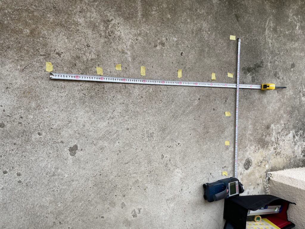 鉄筋に反応があった箇所にマークし、本数や間隔を確認します。